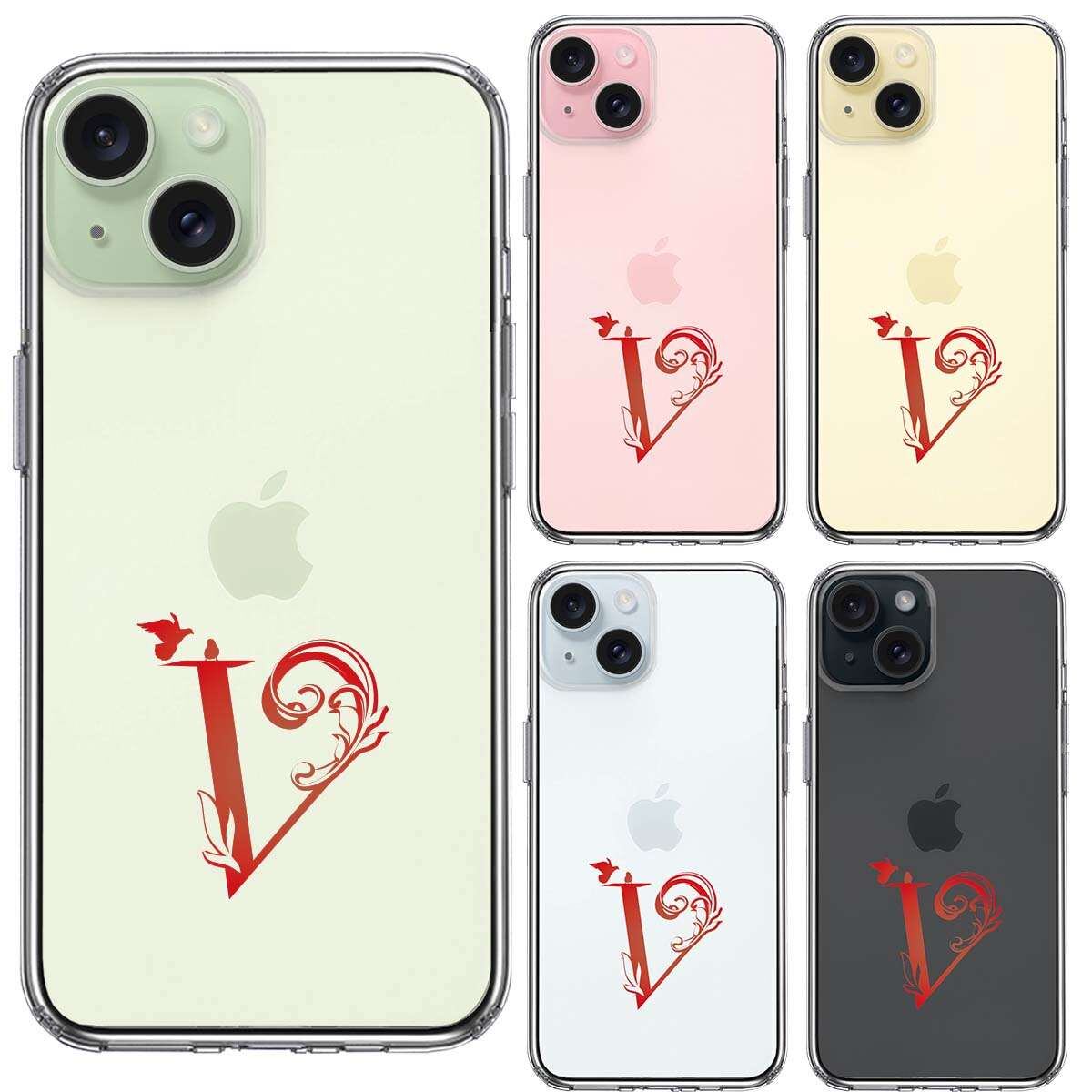 iPhone15 側面ソフト 背面ハード ハイブリッド クリア ケース アルファベット 【V】