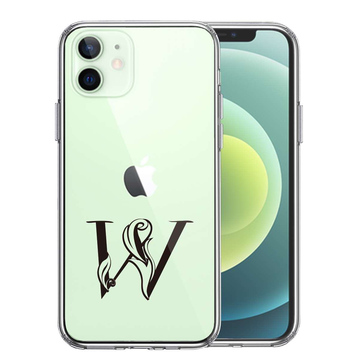 iPhone12mini 側面ソフト 背面ハード ハイブリッド クリア ケース アルファベット 【W】