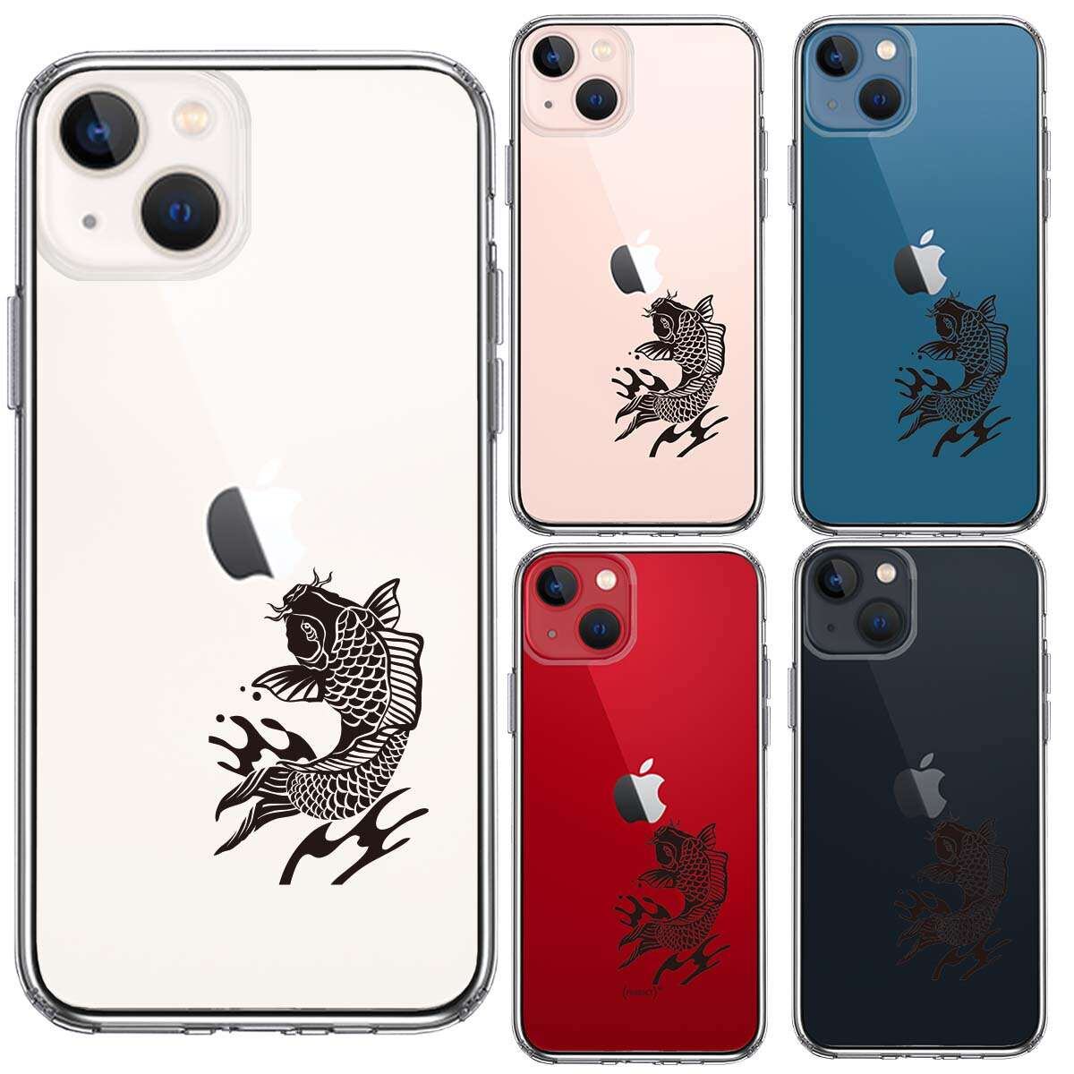 iPhone13mini 側面ソフト 背面ハード ハイブリッド クリア ケース 黒鯉