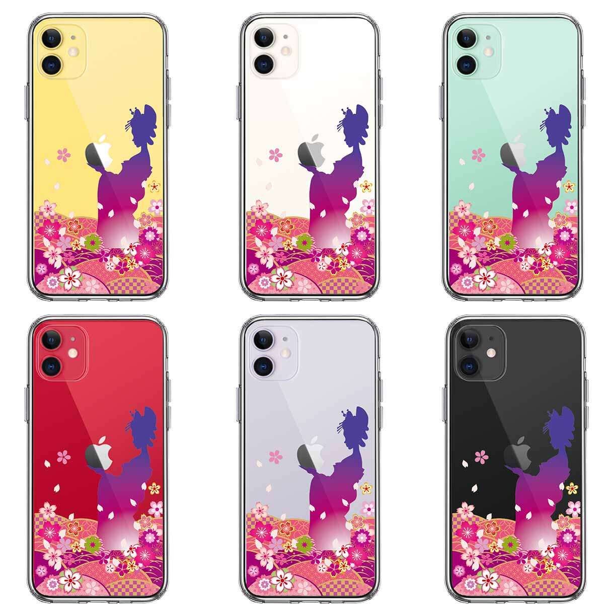 iPhone11 側面ソフト 背面ハード ハイブリッド クリア ケース 日本女性 着物少女 青紫
