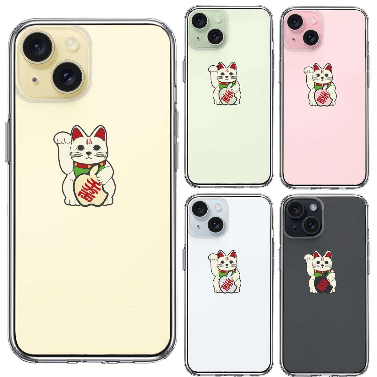 iPhone15 側面ソフト 背面ハード ハイブリッド クリア ケース 幸福の猫 猫招き
