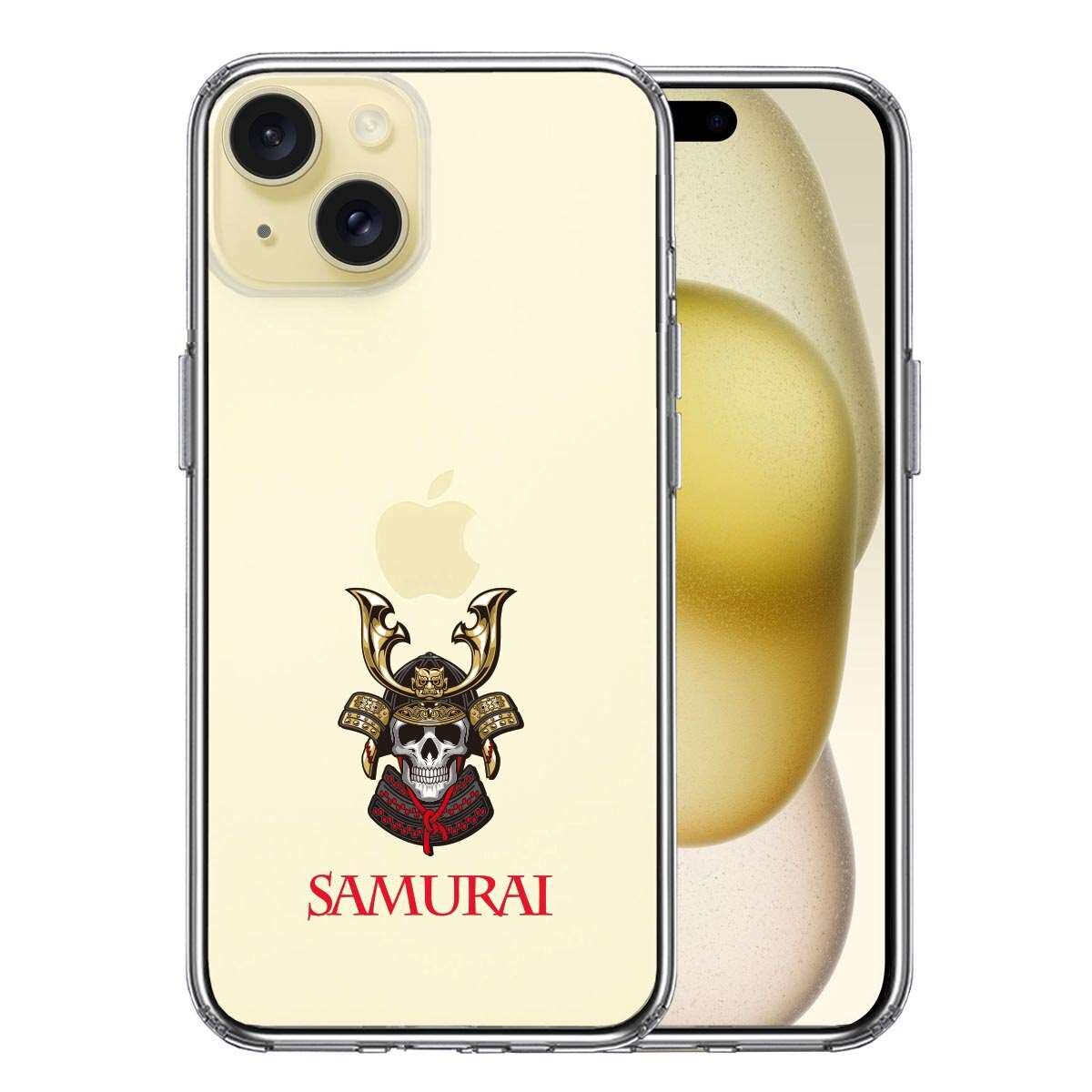 iPhone 15 Plus 側面ソフト 背面ハード ハイブリッド クリア ケース サムライ スカル武者