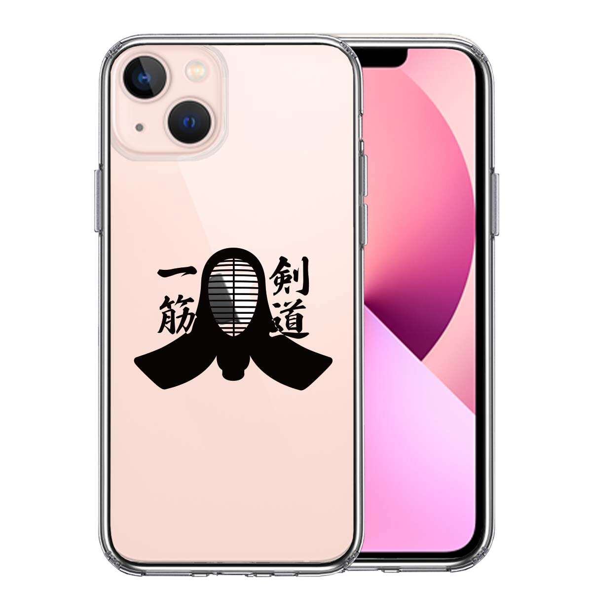 iPhone13mini 側面ソフト 背面ハード ハイブリッド クリア ケース 剣道 面 黒