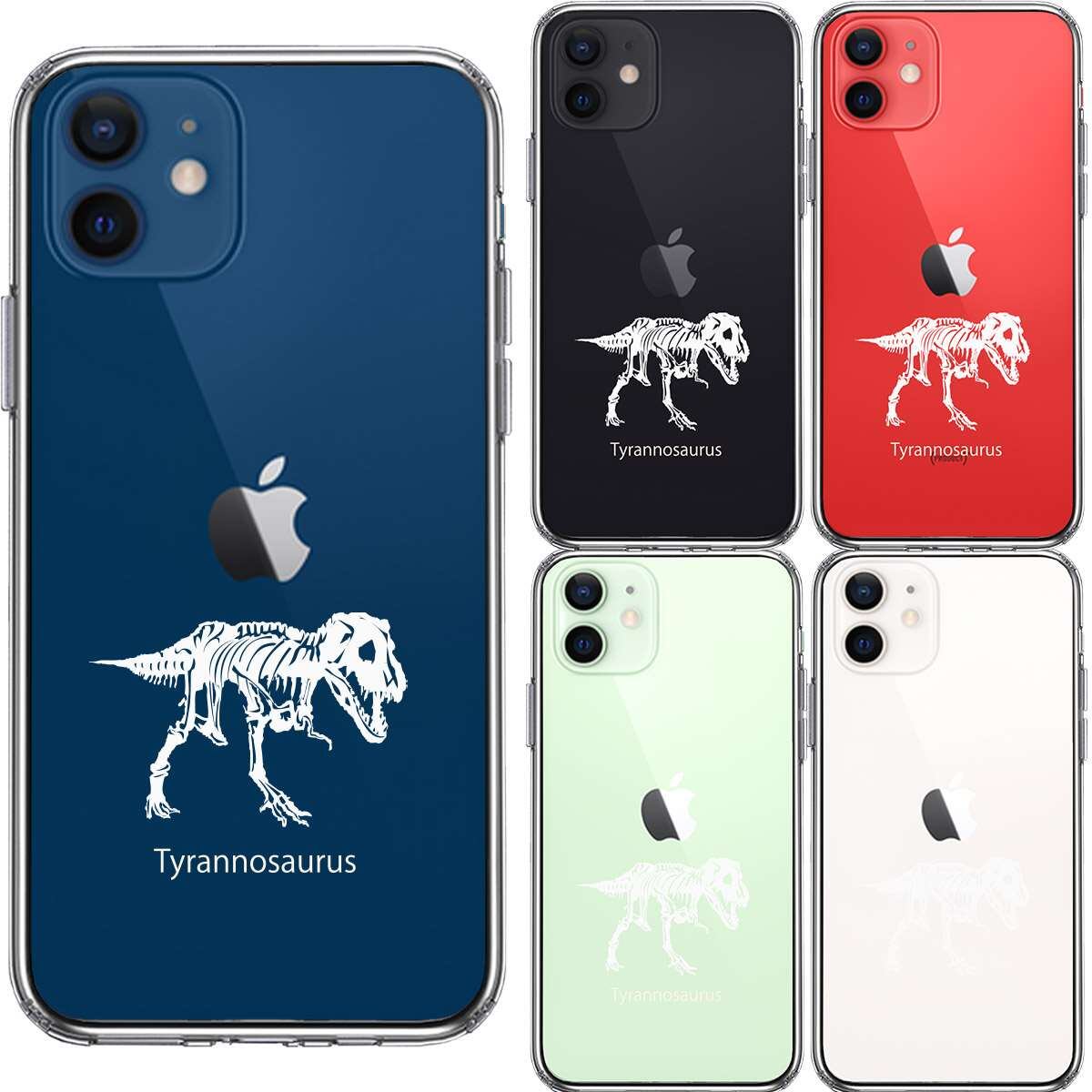 iPhone12mini 側面ソフト 背面ハード ハイブリッド クリア ケース ティラノサウルス ホワイト