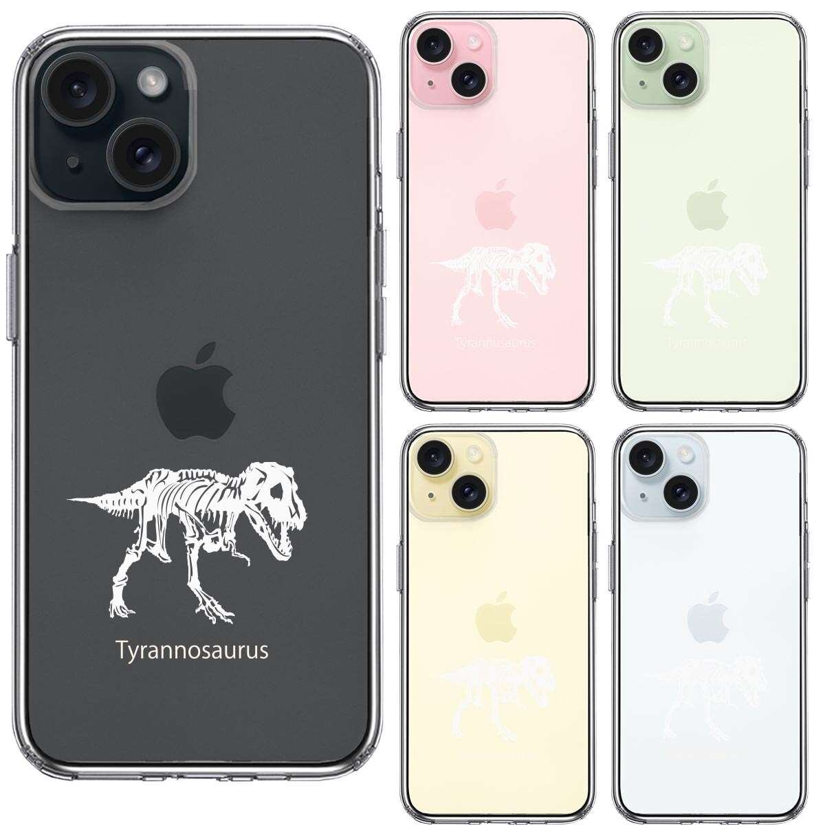 iPhone 15 Plus 側面ソフト 背面ハード ハイブリッド クリア ケース ティラノサウルス ホワイト