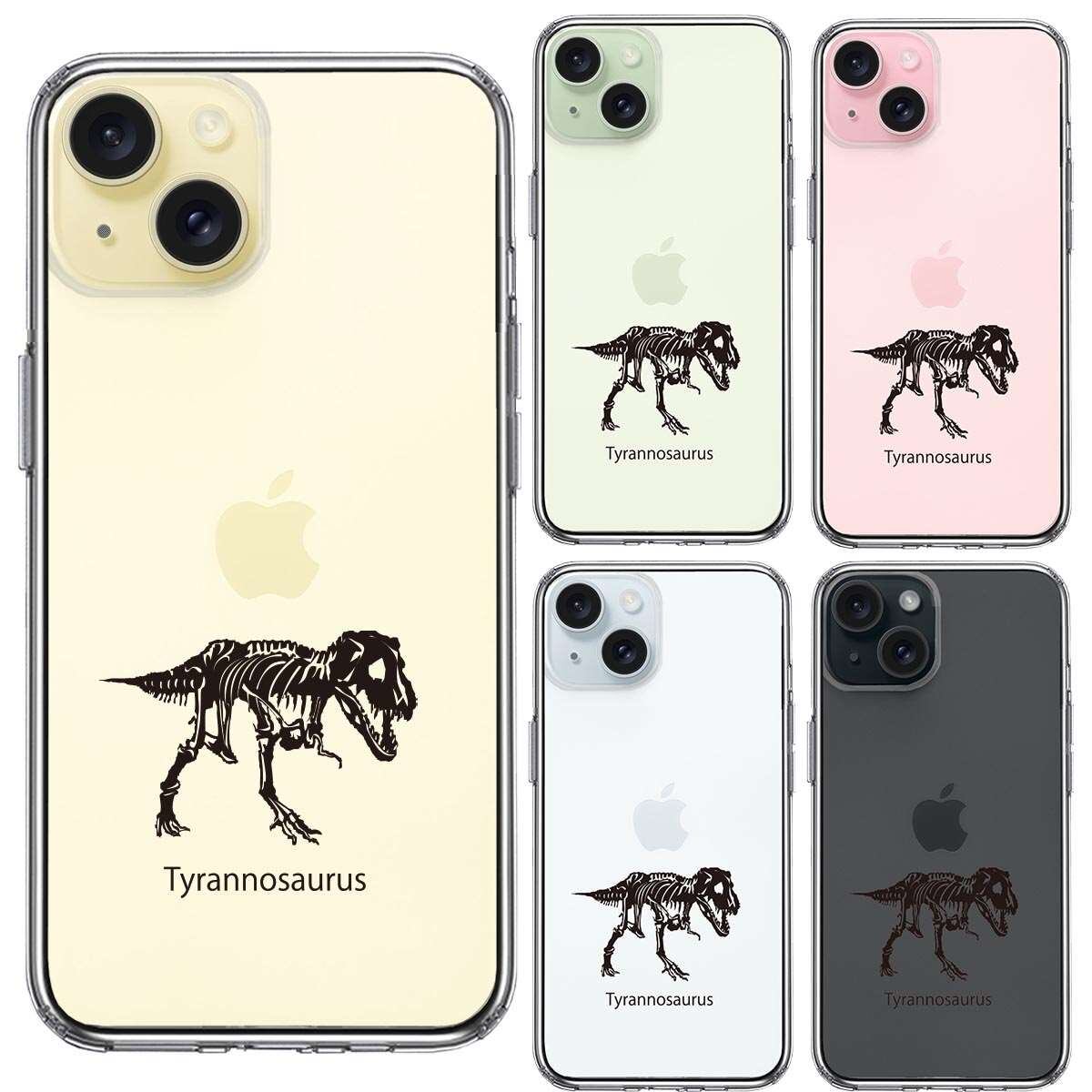 iPhone15 側面ソフト 背面ハード ハイブリッド クリア ケース ティラノサウルス