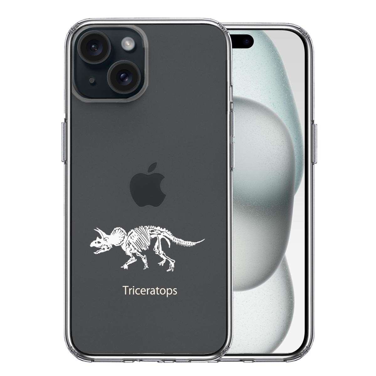 iPhone 15 Plus 側面ソフト 背面ハード ハイブリッド クリア ケース トリケラトプス ホワイト