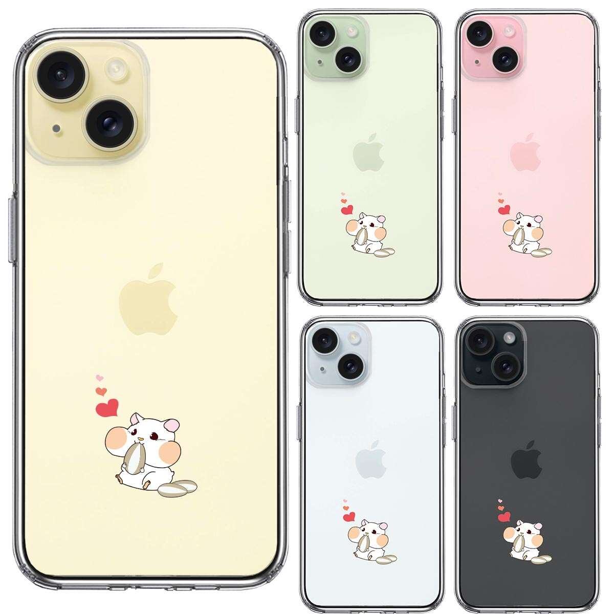 iPhone15 側面ソフト 背面ハード ハイブリッド クリア ケース ジャケット ハムスター ハート