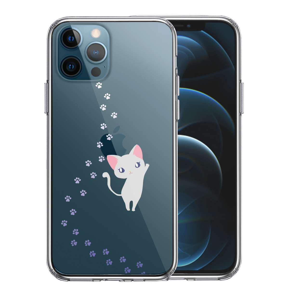 iPhone12 Pro 側面ソフト 背面ハード ハイブリッド クリア ケース ジャケット ねこ フットプリント