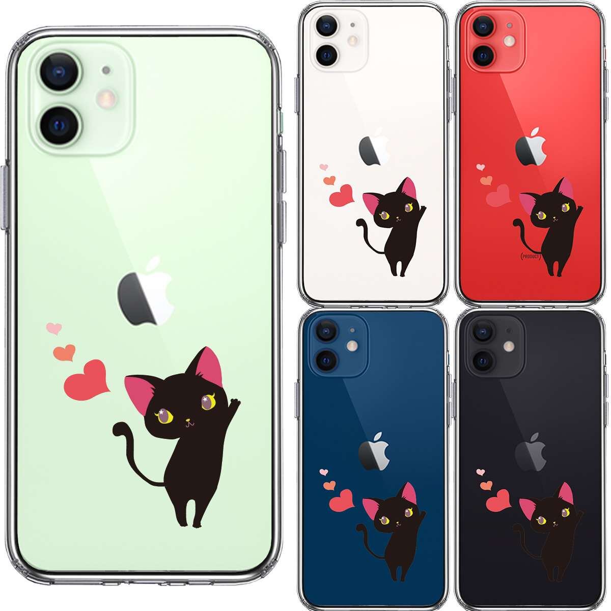 iPhone12mini 側面ソフト 背面ハード ハイブリッド クリア ケース ジャケット ねこ ハート