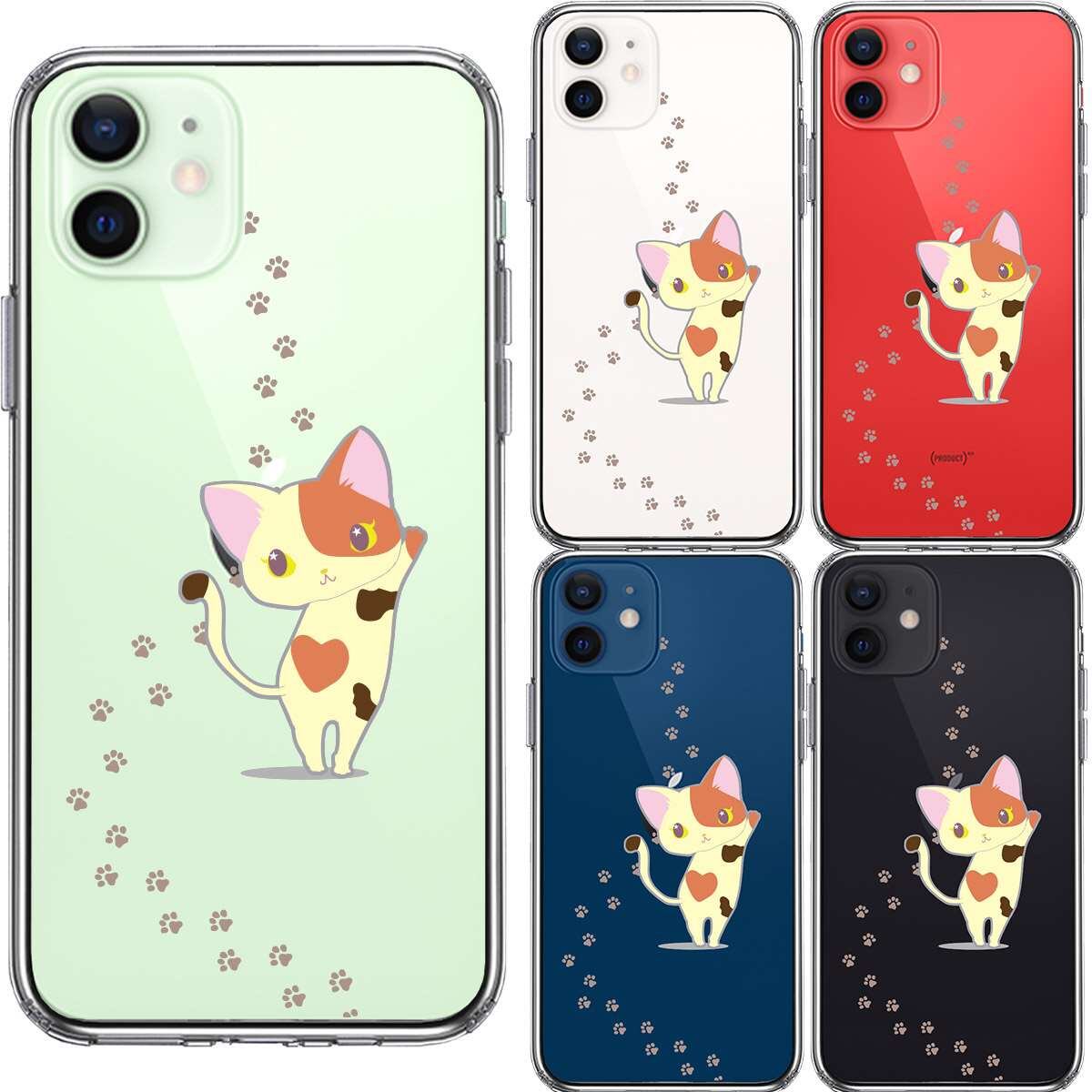 iPhone12mini 側面ソフト 背面ハード ハイブリッド クリア ケース ジャケット 三毛猫 フットプリント