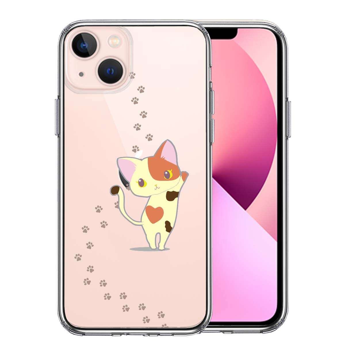 iPhone13 側面ソフト 背面ハード ハイブリッド クリア ケース ジャケット 三毛猫 フットプリント