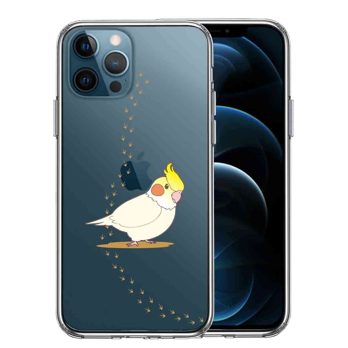iPhone12 Pro 側面ソフト 背面ハード ハイブリッド クリア ケース インコ 足跡