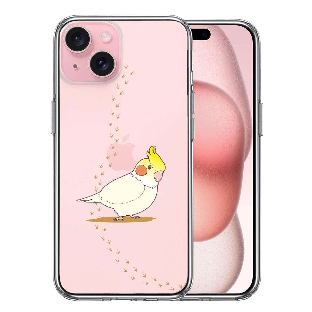 iPhone 15 Plus 側面ソフト 背面ハード ハイブリッド クリア ケース インコ 足跡
