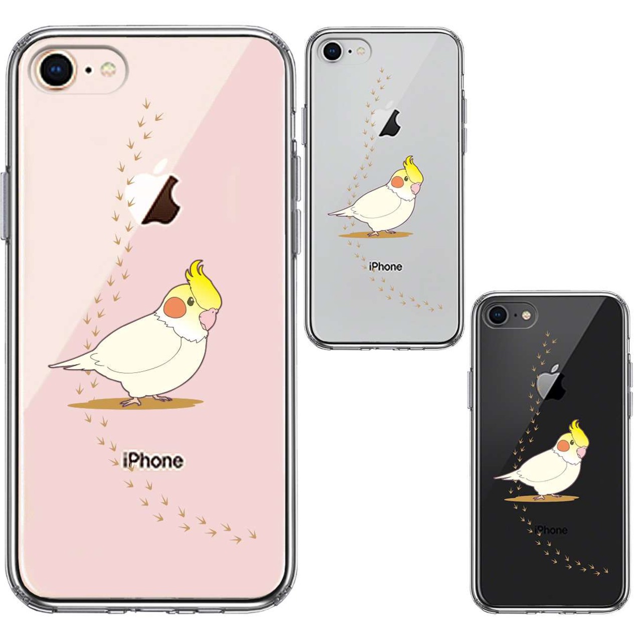iPhone7 iPhone8 兼用 側面ソフト 背面ハード ハイブリッド クリア ケース インコ 足跡