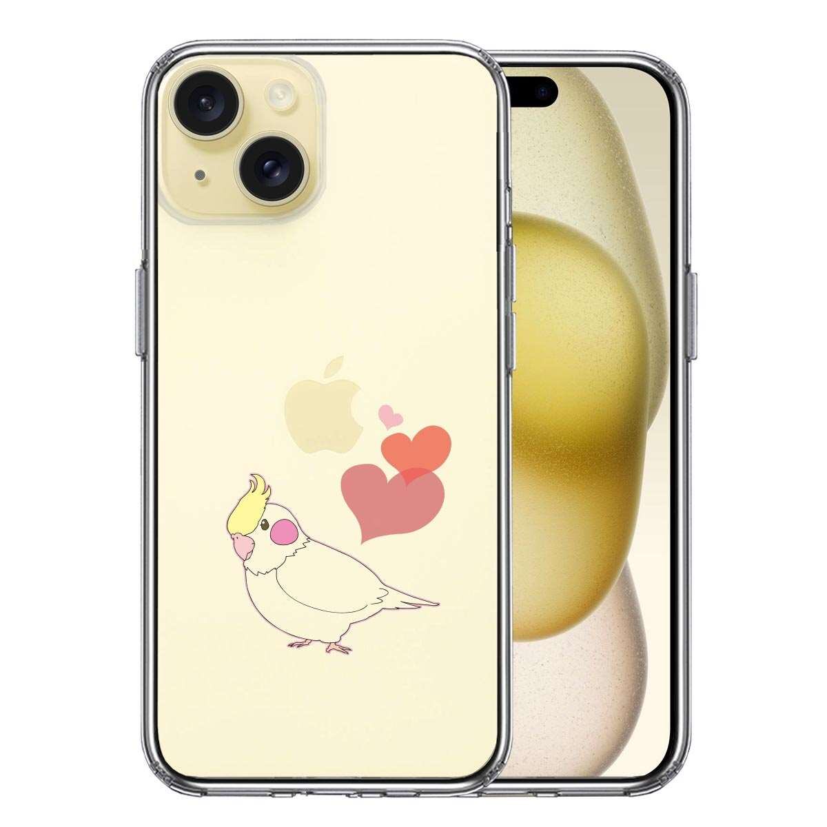iPhone15 側面ソフト 背面ハード ハイブリッド クリア ケース インコ ハート