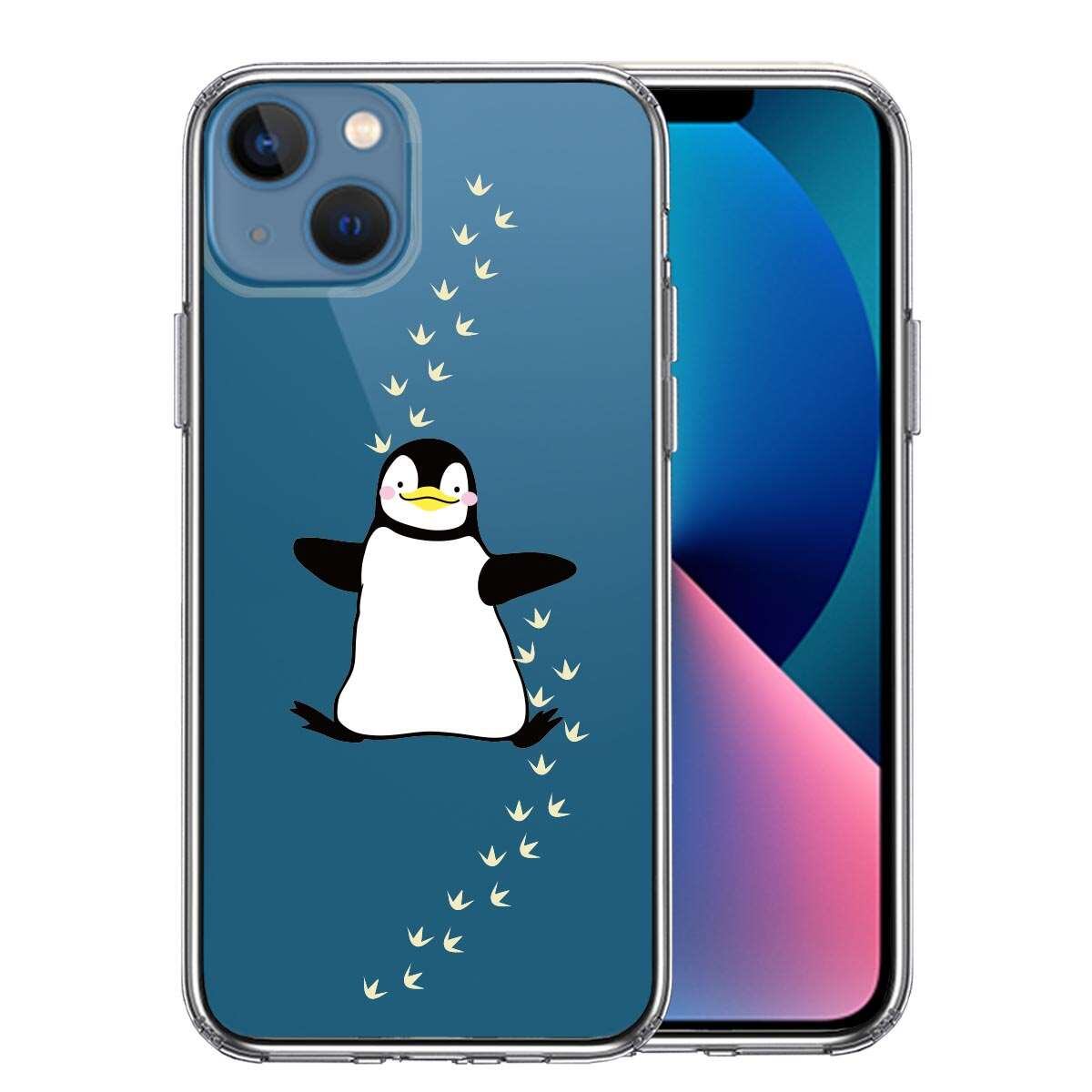 iPhone13mini 側面ソフト 背面ハード ハイブリッド クリア ケース ペンギン フットプリント