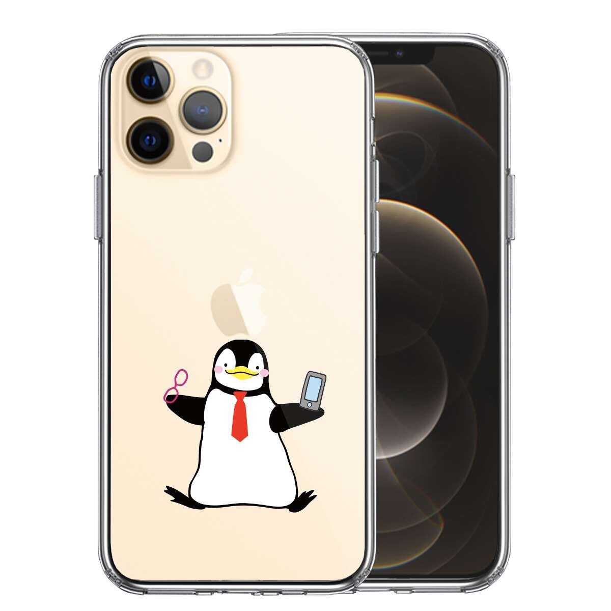 iPhone12 Pro 側面ソフト 背面ハード ハイブリッド クリア ケース ペンギン 眼鏡とスマホ