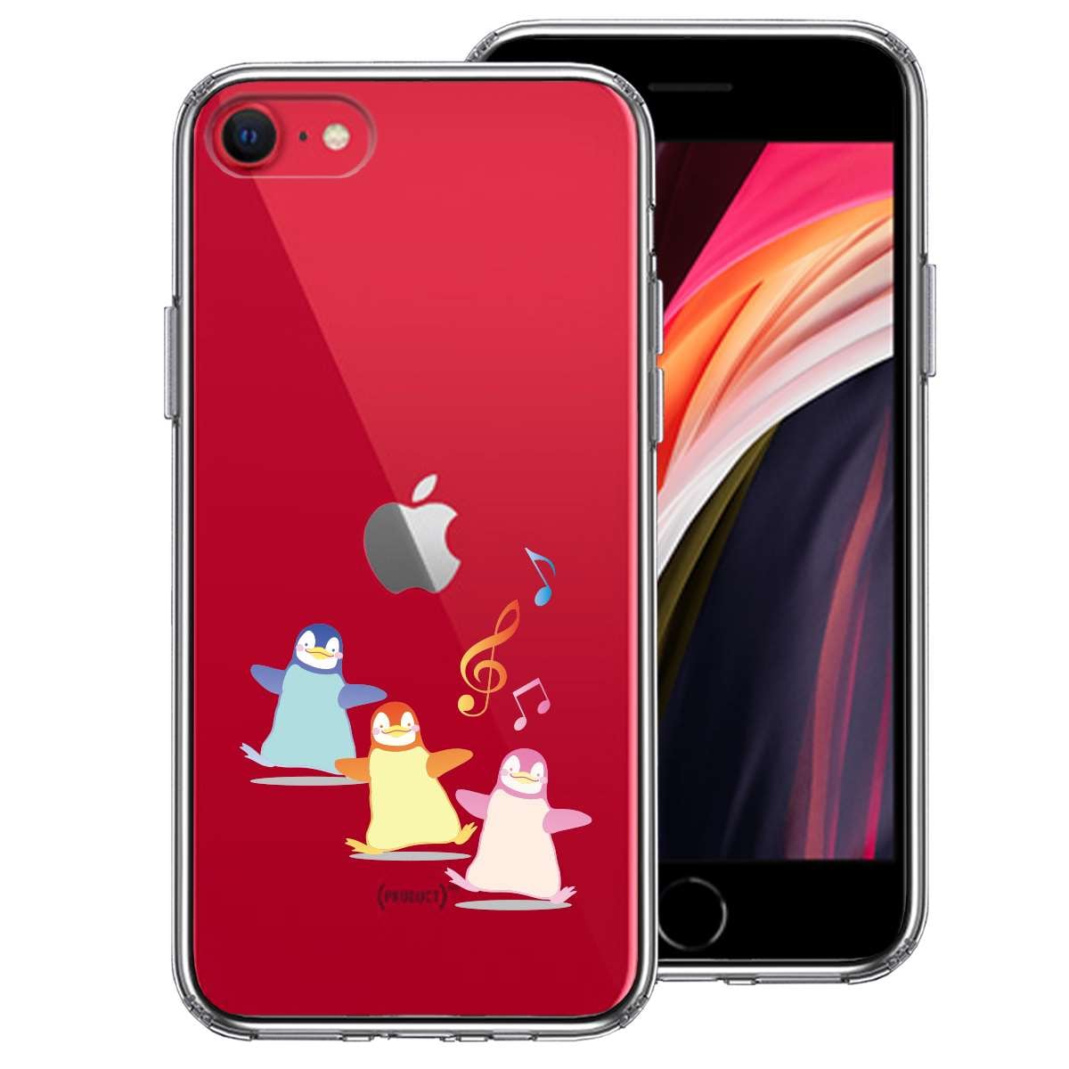iPhoneSE(第3 第2世代) 側面ソフト 背面ハード ハイブリッド クリア ケース ペンギン 音楽