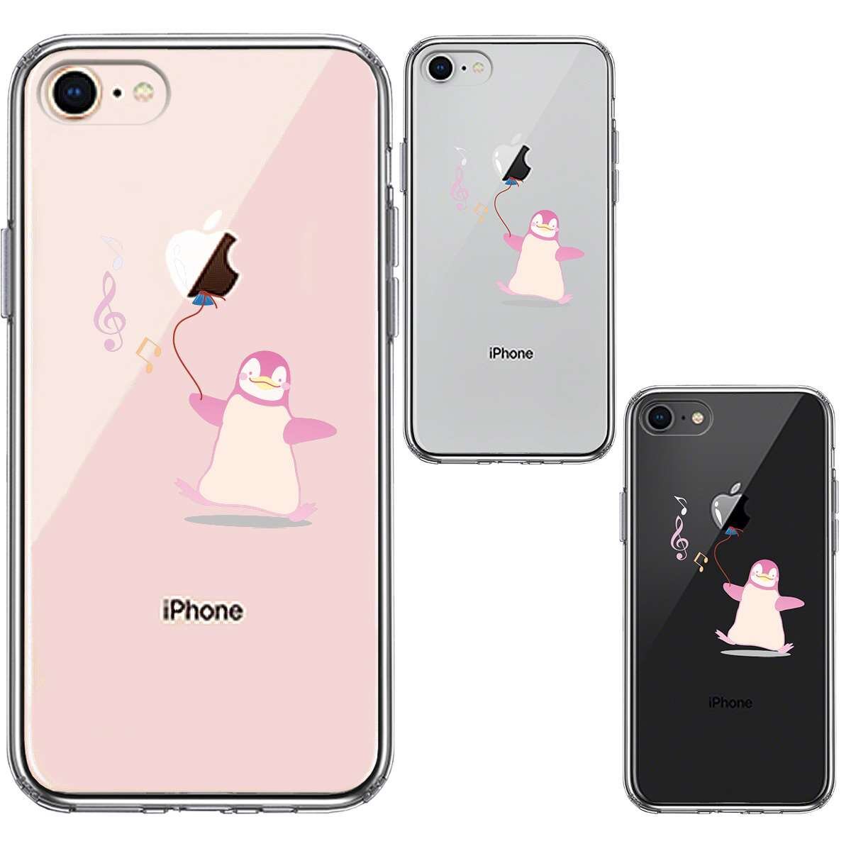 iPhone8 側面ソフト 背面ハード ハイブリッド クリア ケース ペンギン 風船