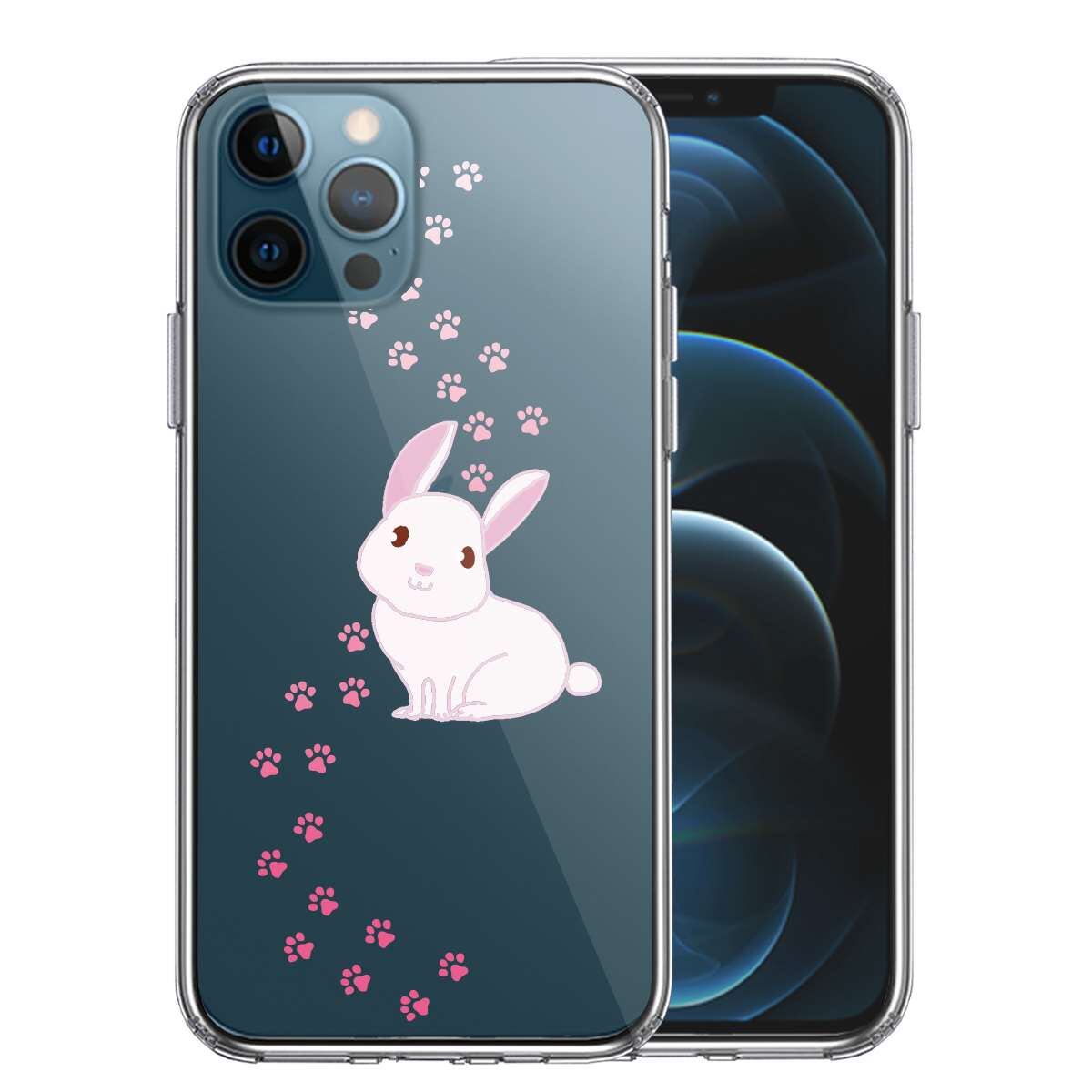 iPhone12 Pro 側面ソフト 背面ハード ハイブリッド クリア ケース うさぎ フットプリント