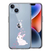 iPhone14 側面ソフト 背面ハード ハイブリッド クリア ケース うさぎ フットプリント