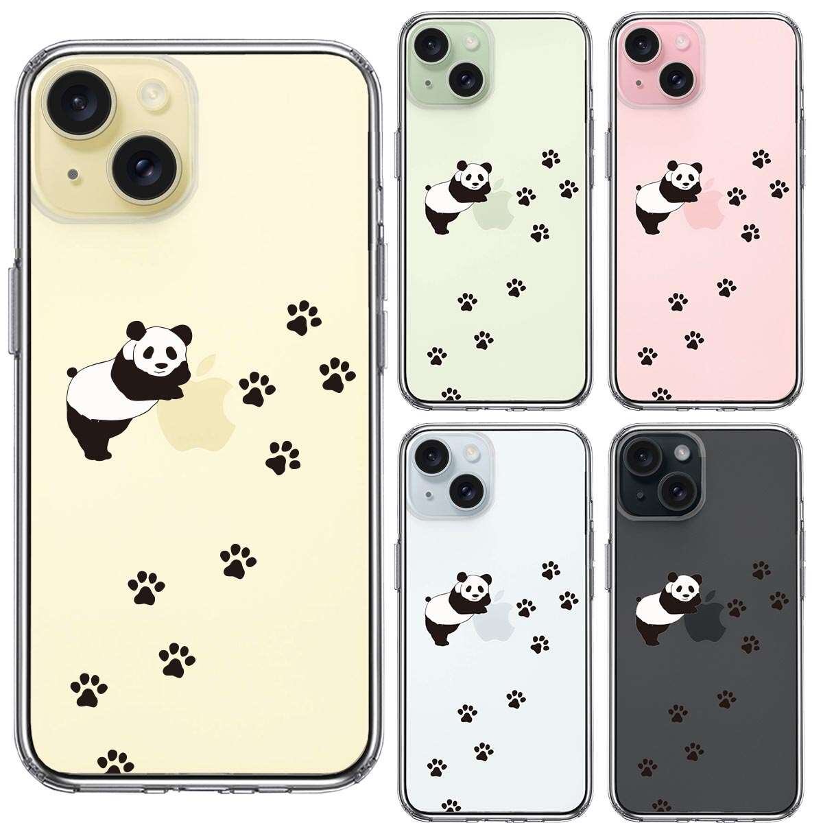 iPhone 15 Plus 側面ソフト 背面ハード ハイブリッド クリア ケース パンダ フットプリント