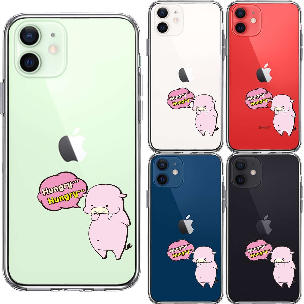iPhone12 側面ソフト 背面ハード ハイブリッド クリア ケース 豚 腹減った