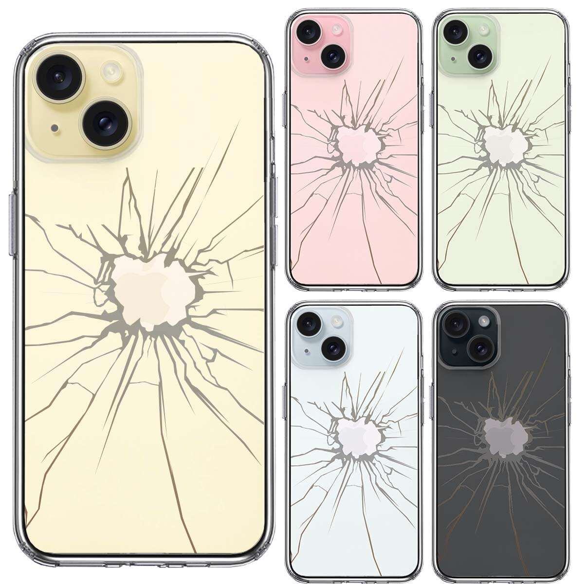 iPhone15 側面ソフト 背面ハード ハイブリッド クリア ケース トリックケース 割れたガラス