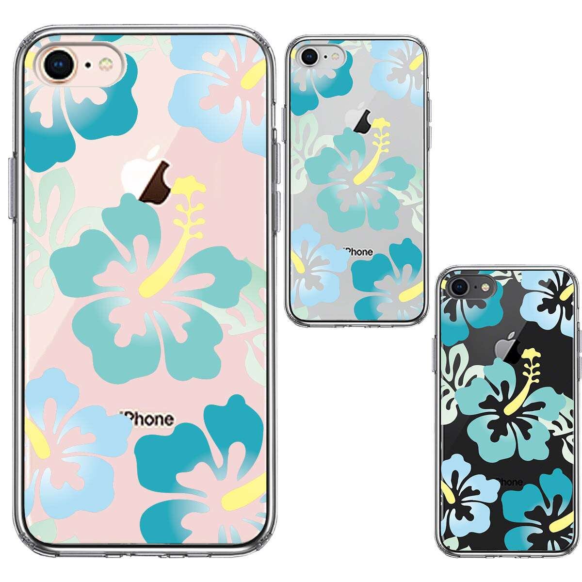 iPhone7 iPhone8 兼用 側面ソフト 背面ハード ハイブリッド クリア ケース ハイビスカス ブルー