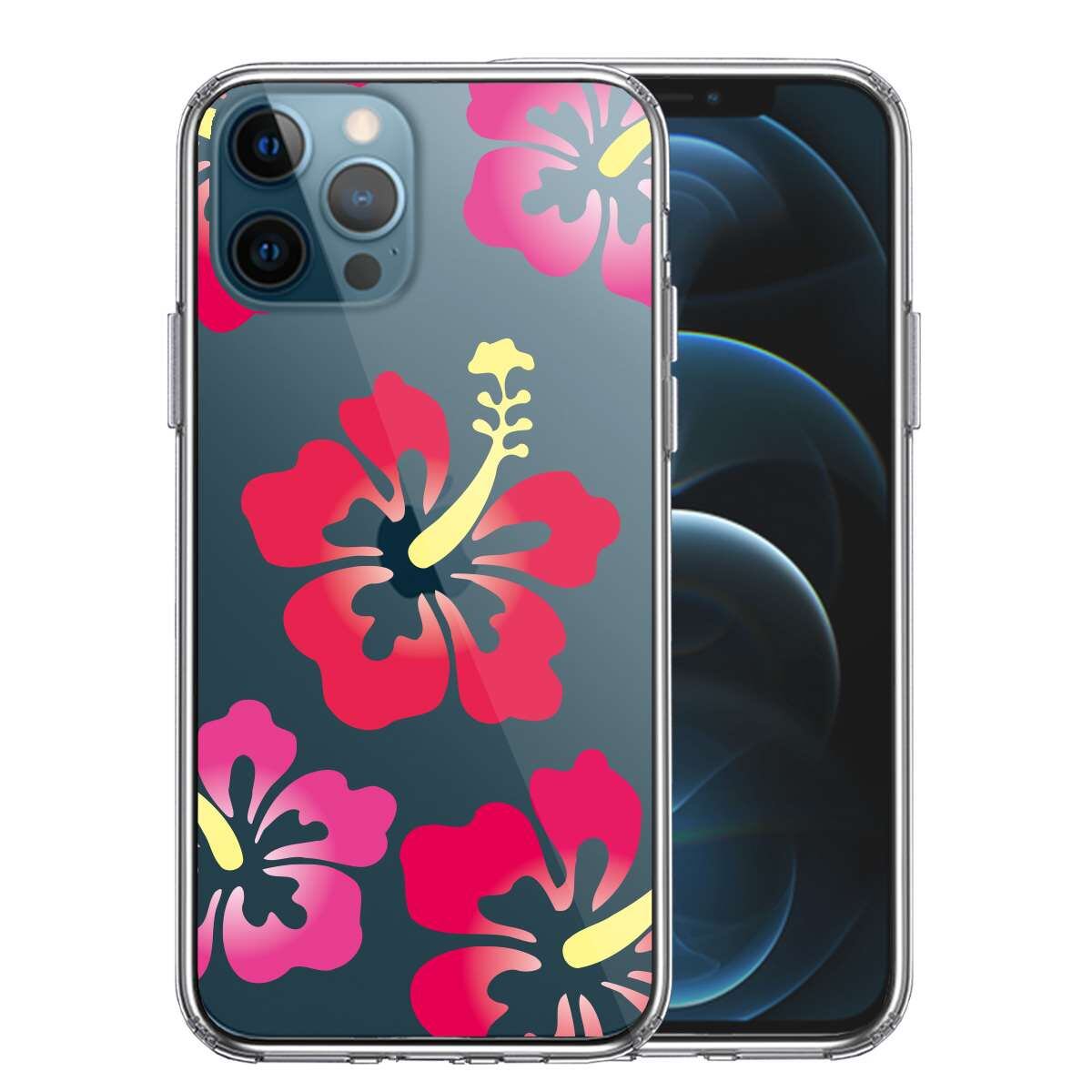 iPhone12 Pro 側面ソフト 背面ハード ハイブリッド クリア ケース ハイビスカス レッド
