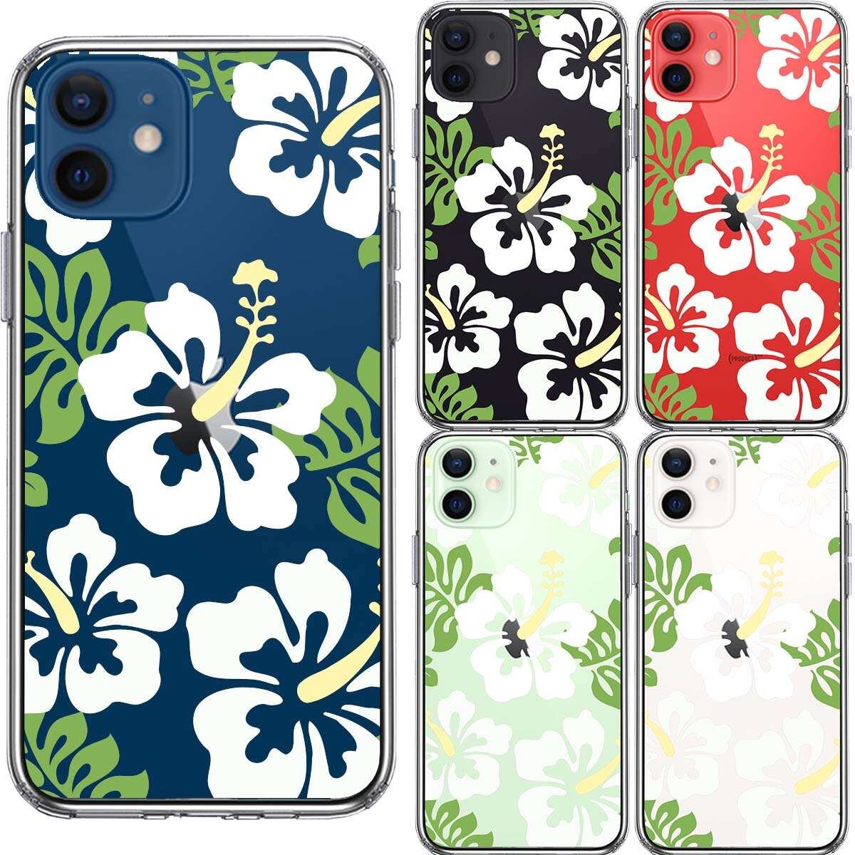 iPhone12 側面ソフト 背面ハード ハイブリッド クリア ケース ハイビスカス ホワイト