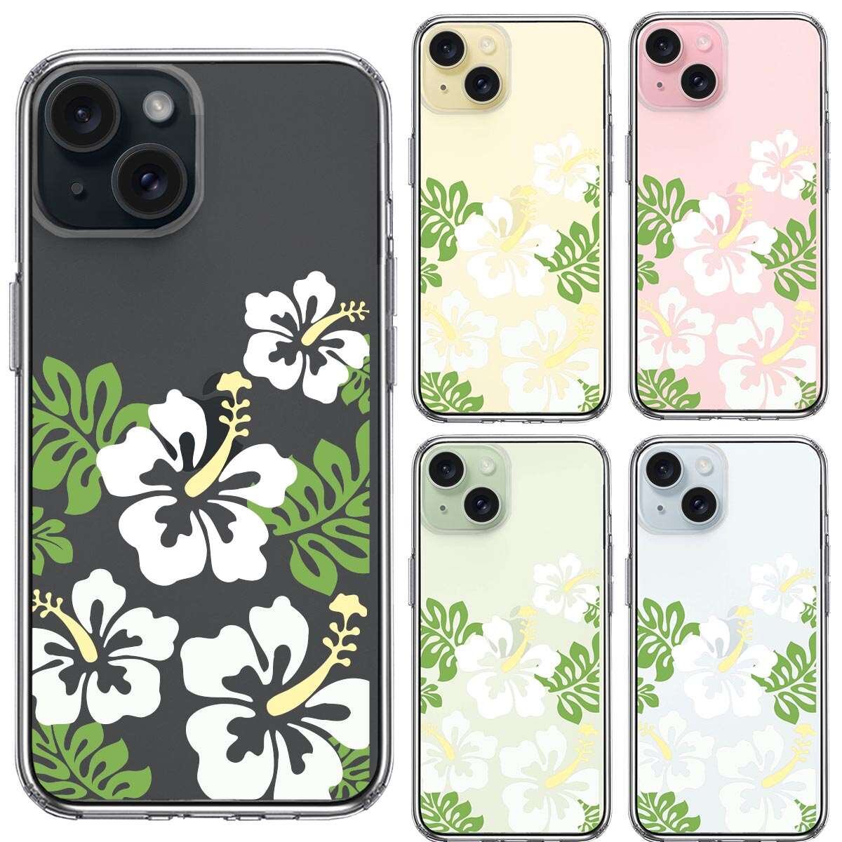 iPhone15 側面ソフト 背面ハード ハイブリッド クリア ケース ハイビスカス ホワイト