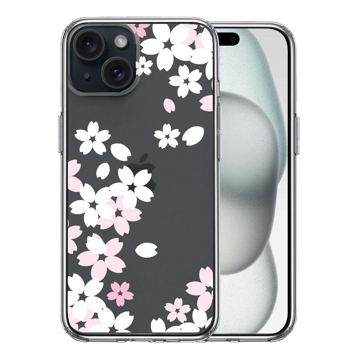 iPhone15 側面ソフト 背面ハード ハイブリッド クリア ケース 桜 ホワイト