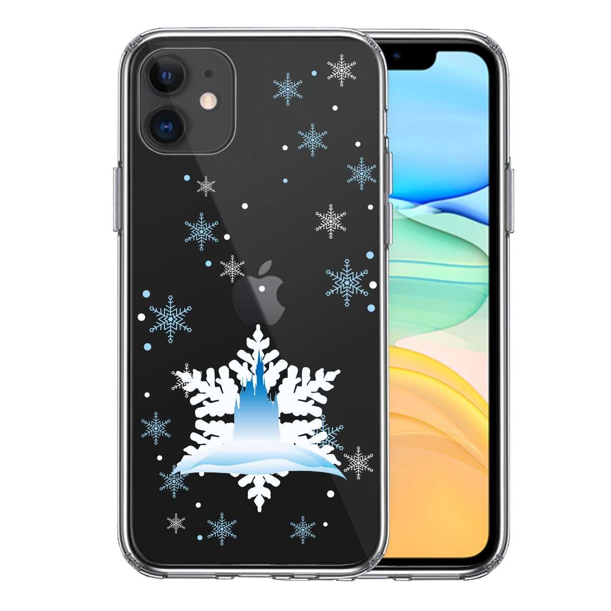 iPhone11 側面ソフト 背面ハード ハイブリッド クリア ケース カバー シンデレラ城 雪結晶