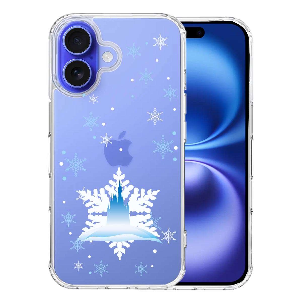 iPhone16 側面ソフト 背面ハード ハイブリッド クリア ケース シンデレラ城 雪結晶