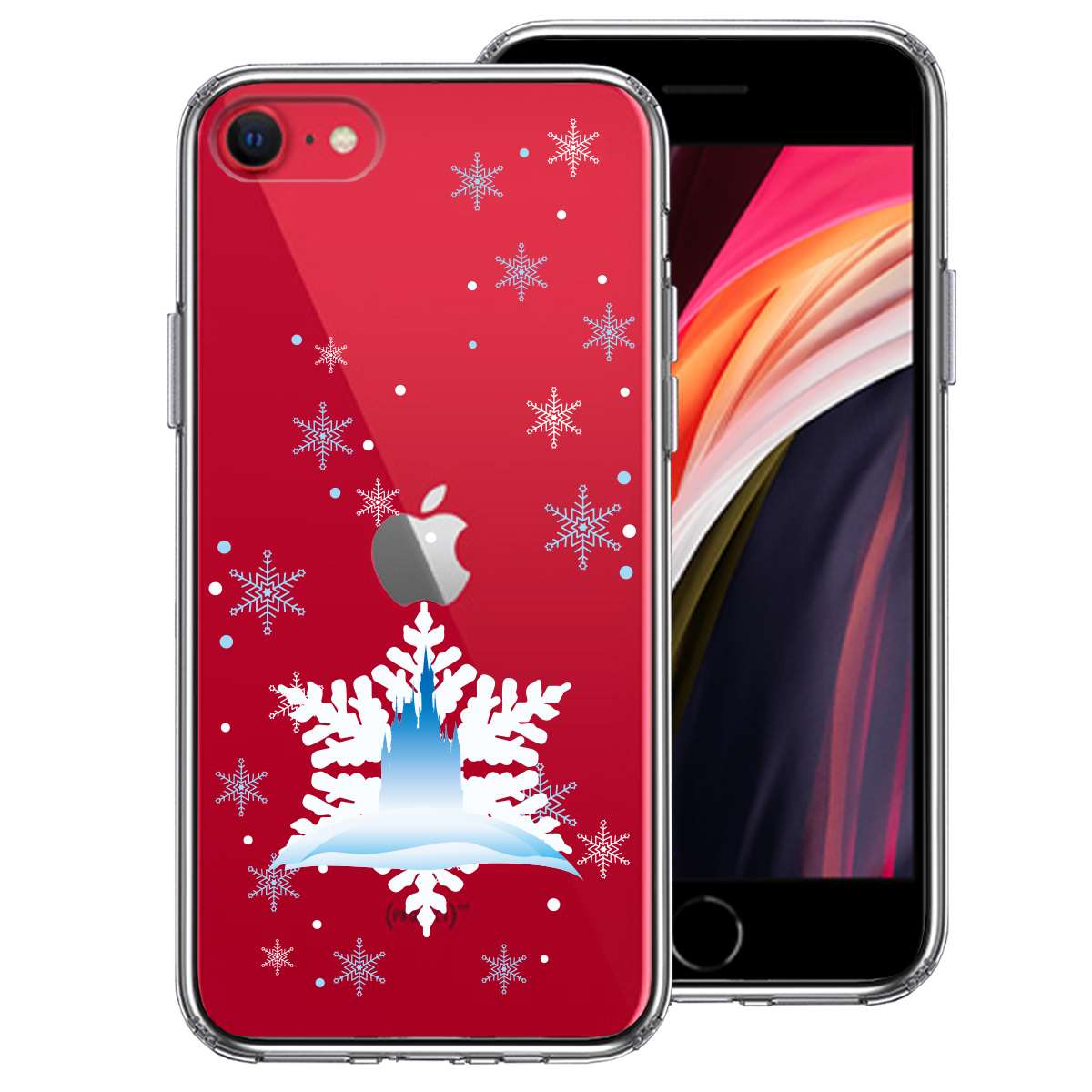 iPhoneSE(第3 第2世代) 側面ソフト 背面ハード ハイブリッド クリア ケース シンデレラ城 雪結晶