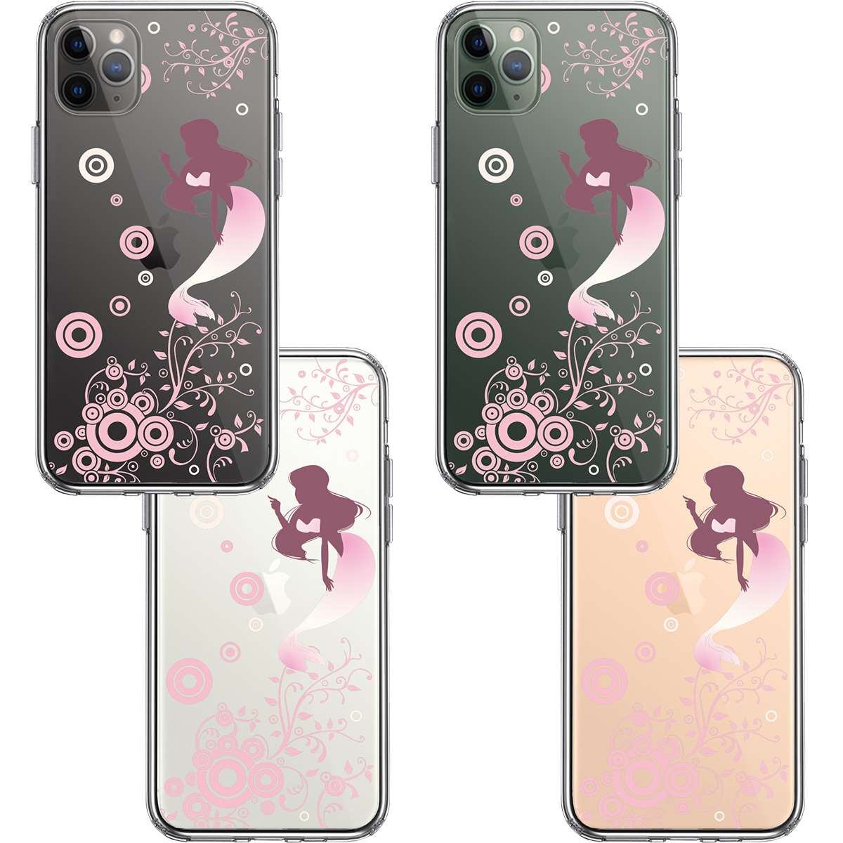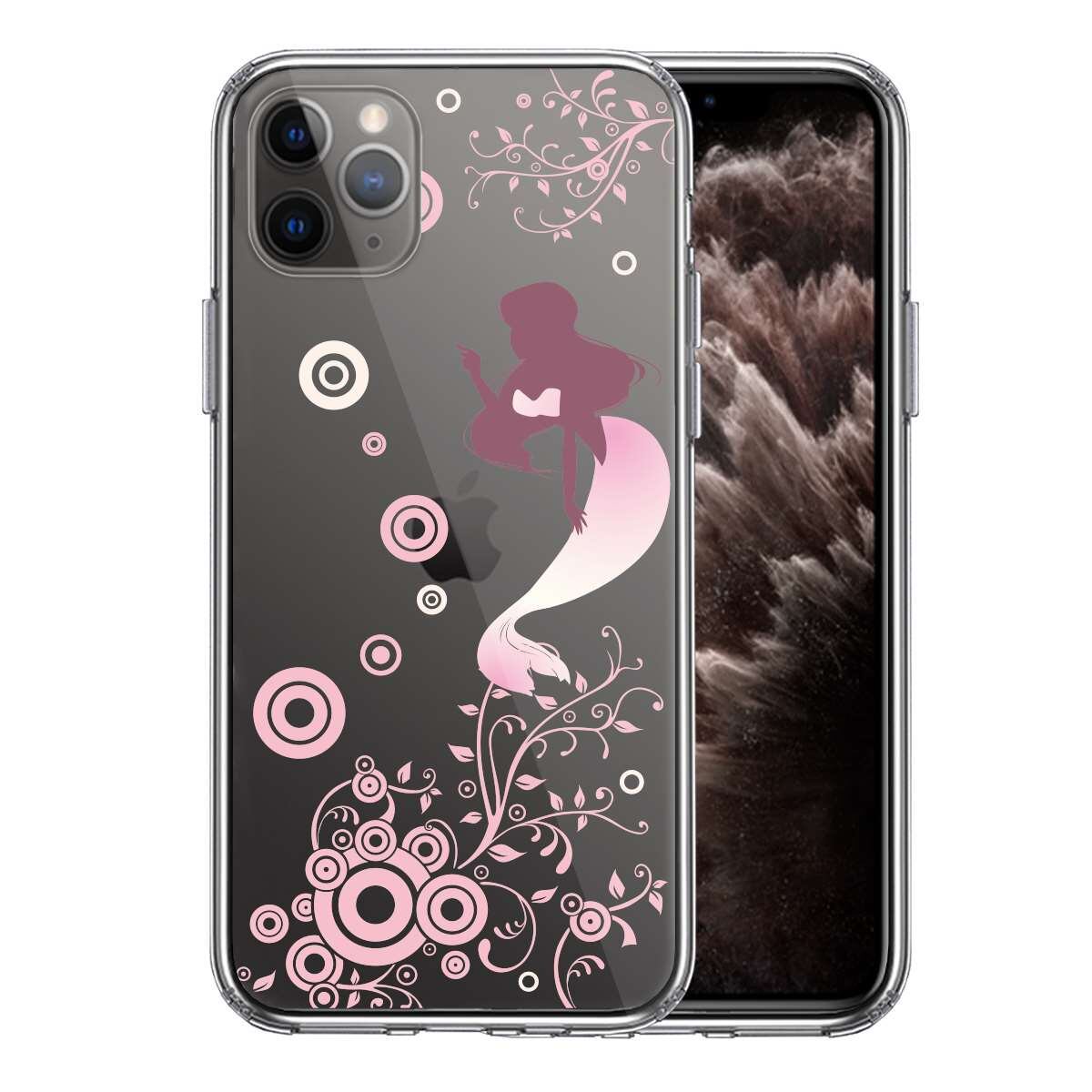 iPhone11pro 側面ソフト 背面ハード ハイブリッド クリア ケース カバー マーメイド 人魚姫 ピンク