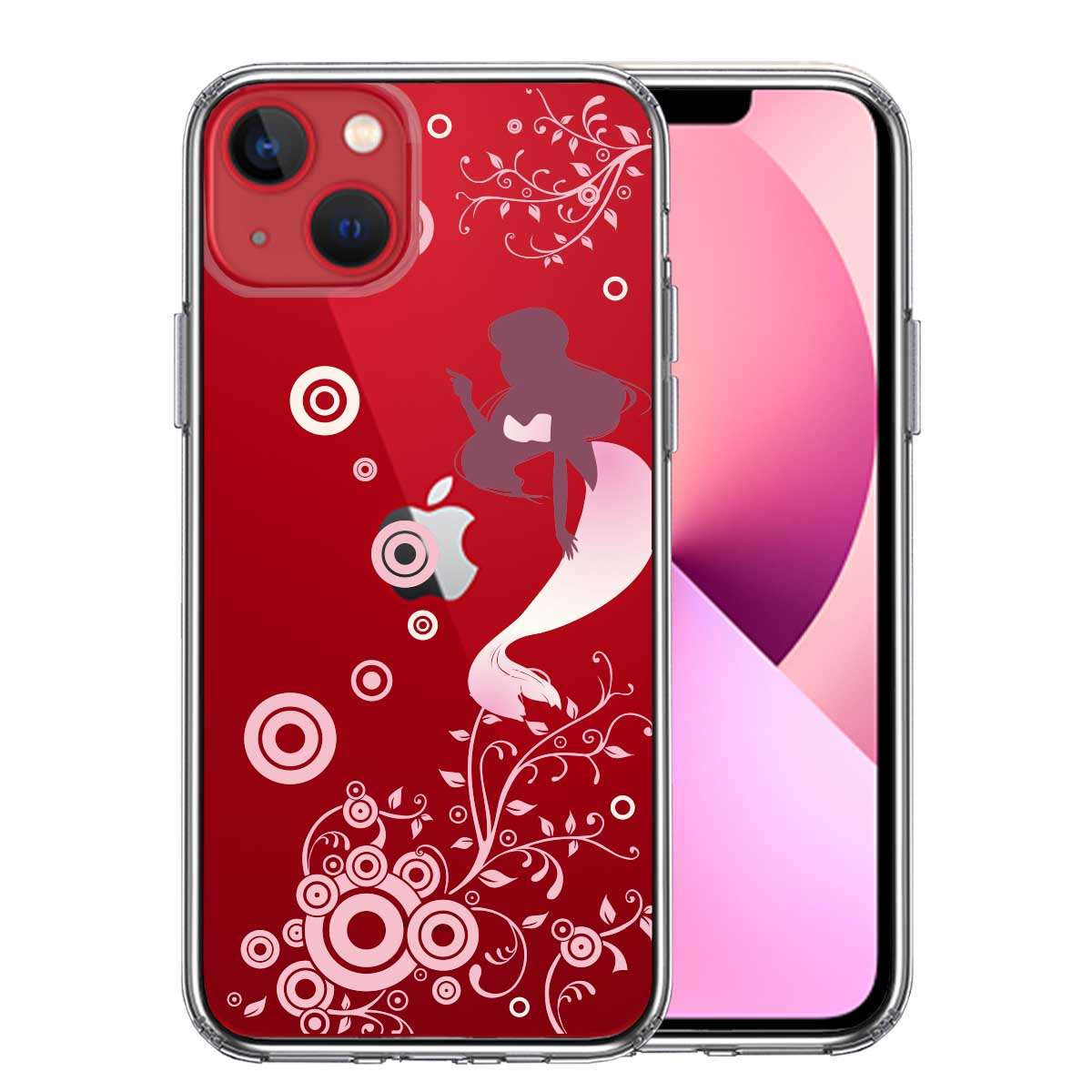 iPhone13mini 側面ソフト 背面ハード ハイブリッド クリア ケース マーメイド 人魚姫 ピンク