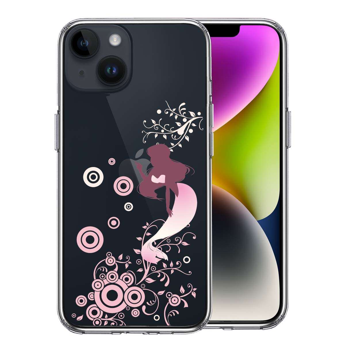 iPhone14 側面ソフト 背面ハード ハイブリッド クリア ケース マーメイド 人魚姫 ピンク