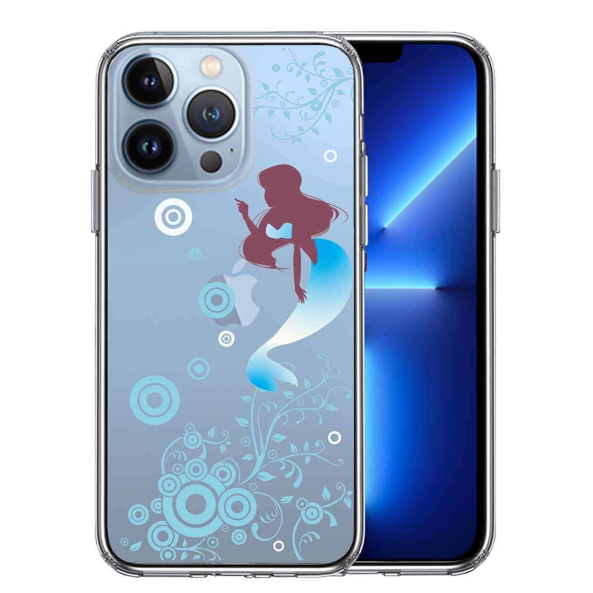 iPhone13 Pro 側面ソフト 背面ハード ハイブリッド クリア ケース マーメイド 人魚姫 ブルー