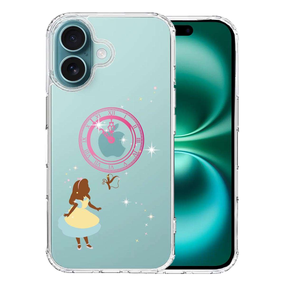 iPhone16 側面ソフト 背面ハード ハイブリッド クリア ケース アリス 時計