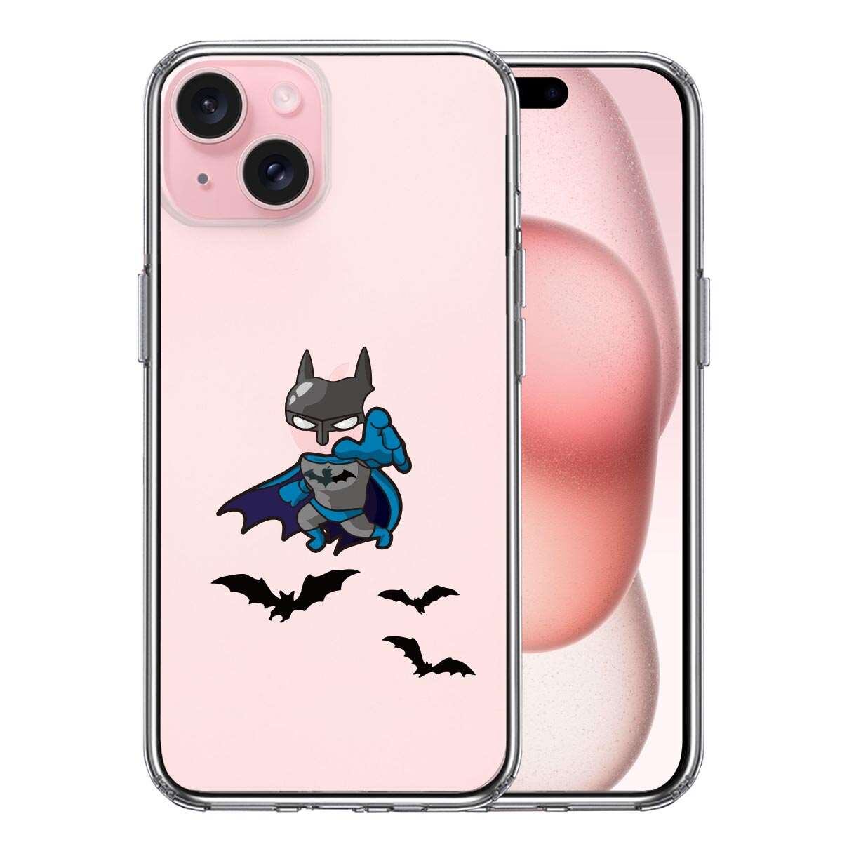 iPhone 15 Plus 側面ソフト 背面ハード ハイブリッド クリア ケース 映画パロディ 蝙蝠男