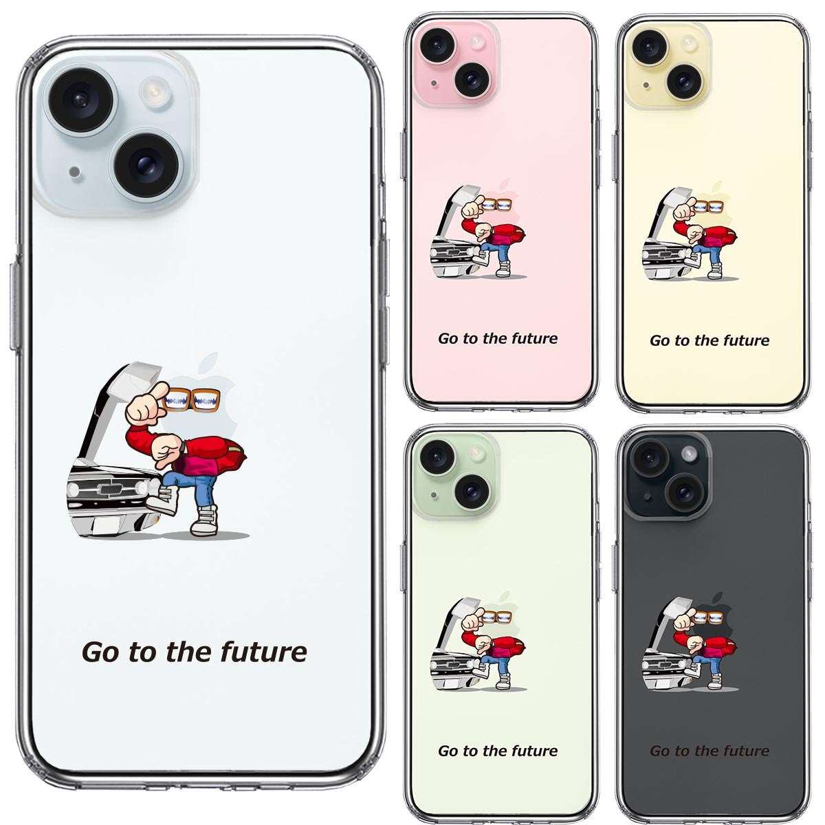 iPhone15 側面ソフト 背面ハード ハイブリッド クリア ケース 映画パロディ go to the future