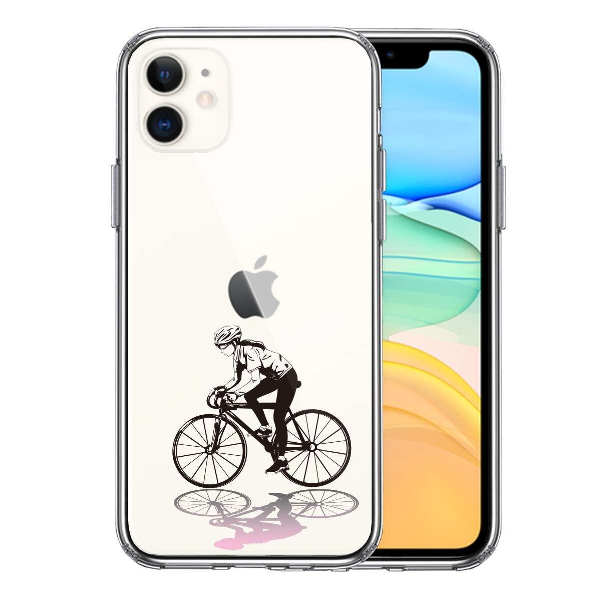 iPhone11 側面ソフト 背面ハード ハイブリッド クリア ケース カバー スポーツサイクリング 女子1