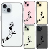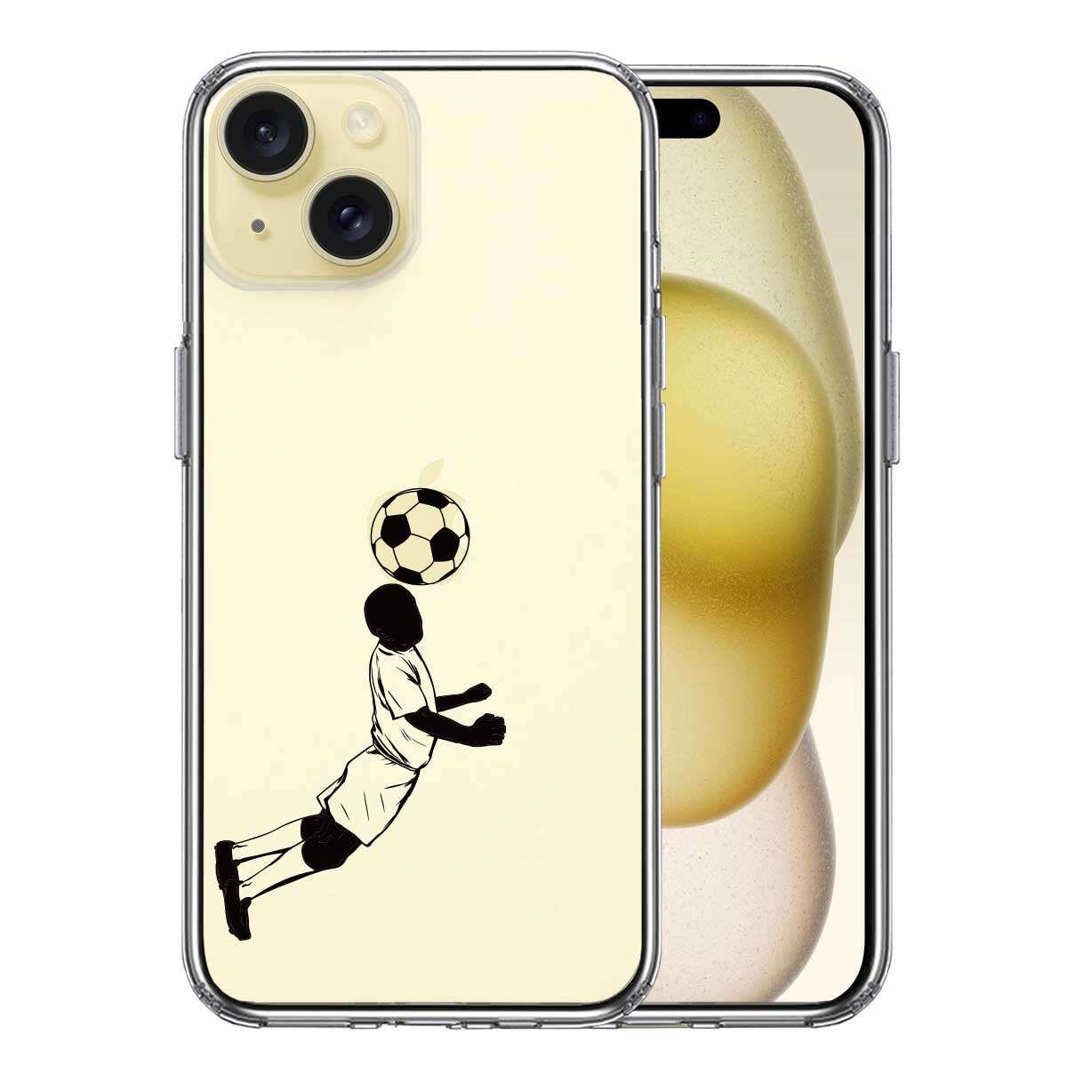 iPhone 15 Plus 側面ソフト 背面ハード ハイブリッド クリア ケース サッカー ヘディング 男子 黒