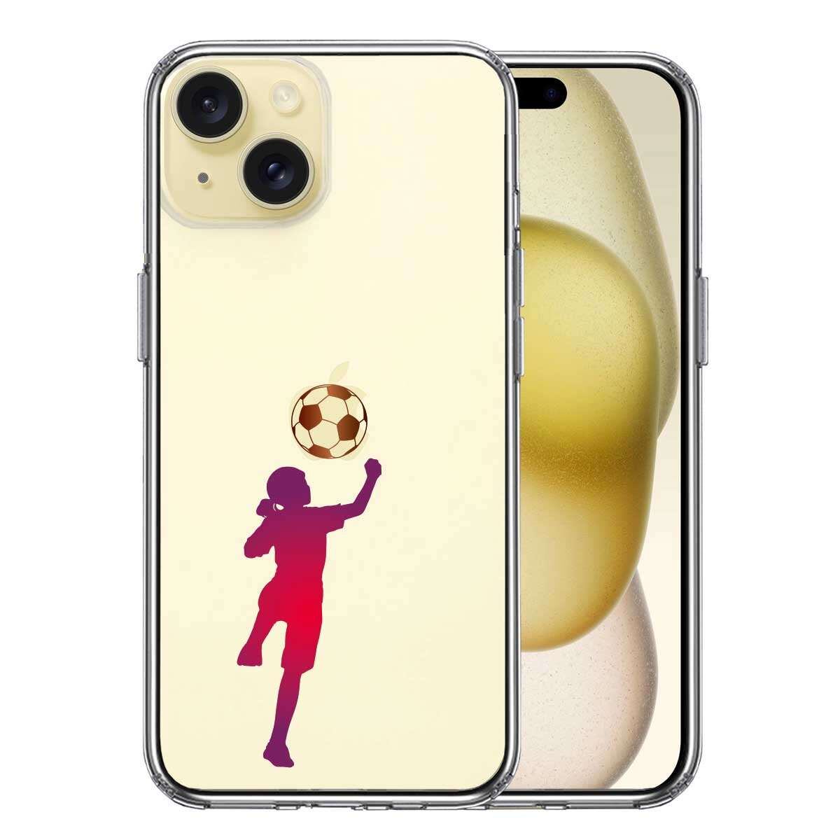 iPhone15 側面ソフト 背面ハード ハイブリッド クリア ケース サッカー ヘディング 女子