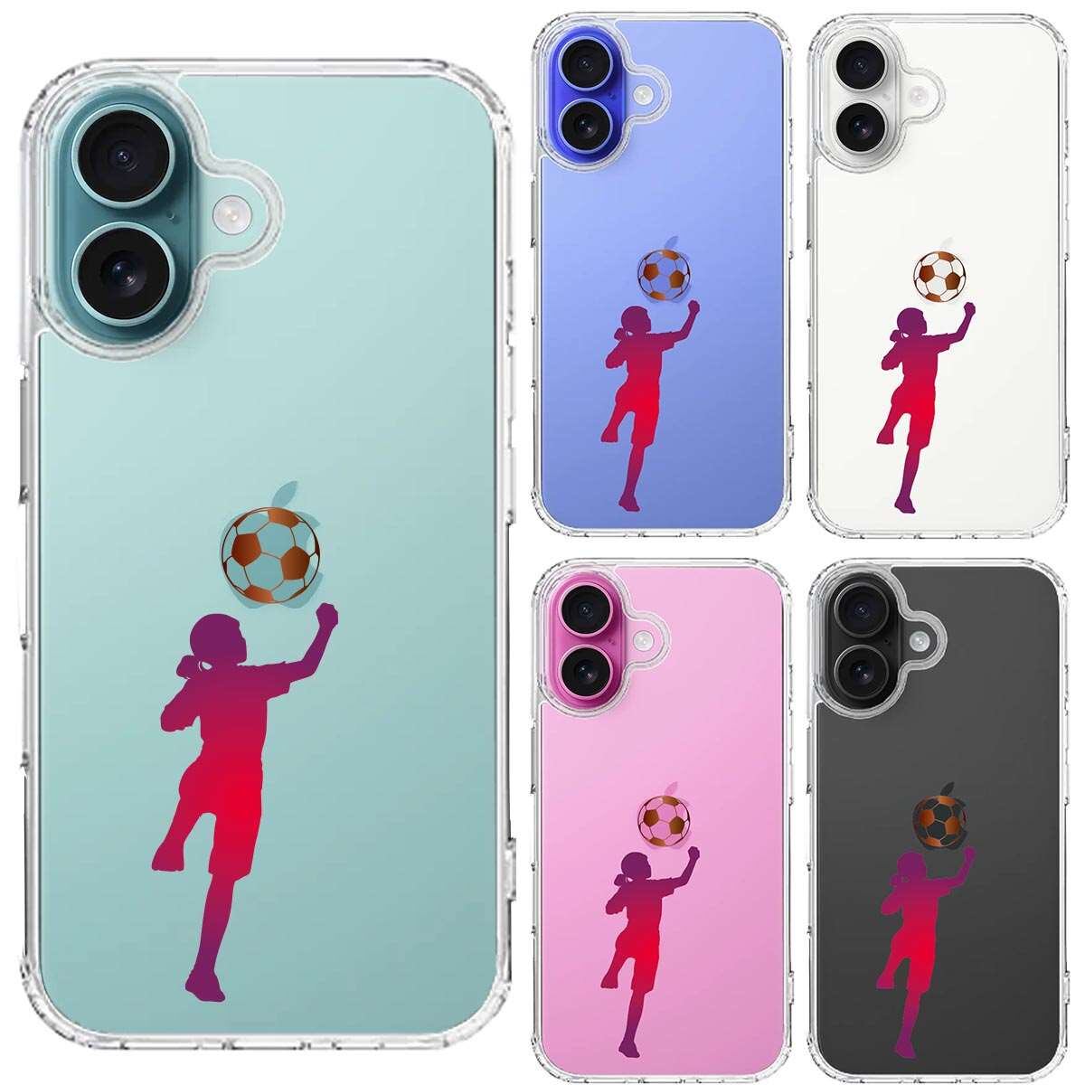 iPhone16 側面ソフト 背面ハード ハイブリッド クリア ケース サッカー ヘディング 女子