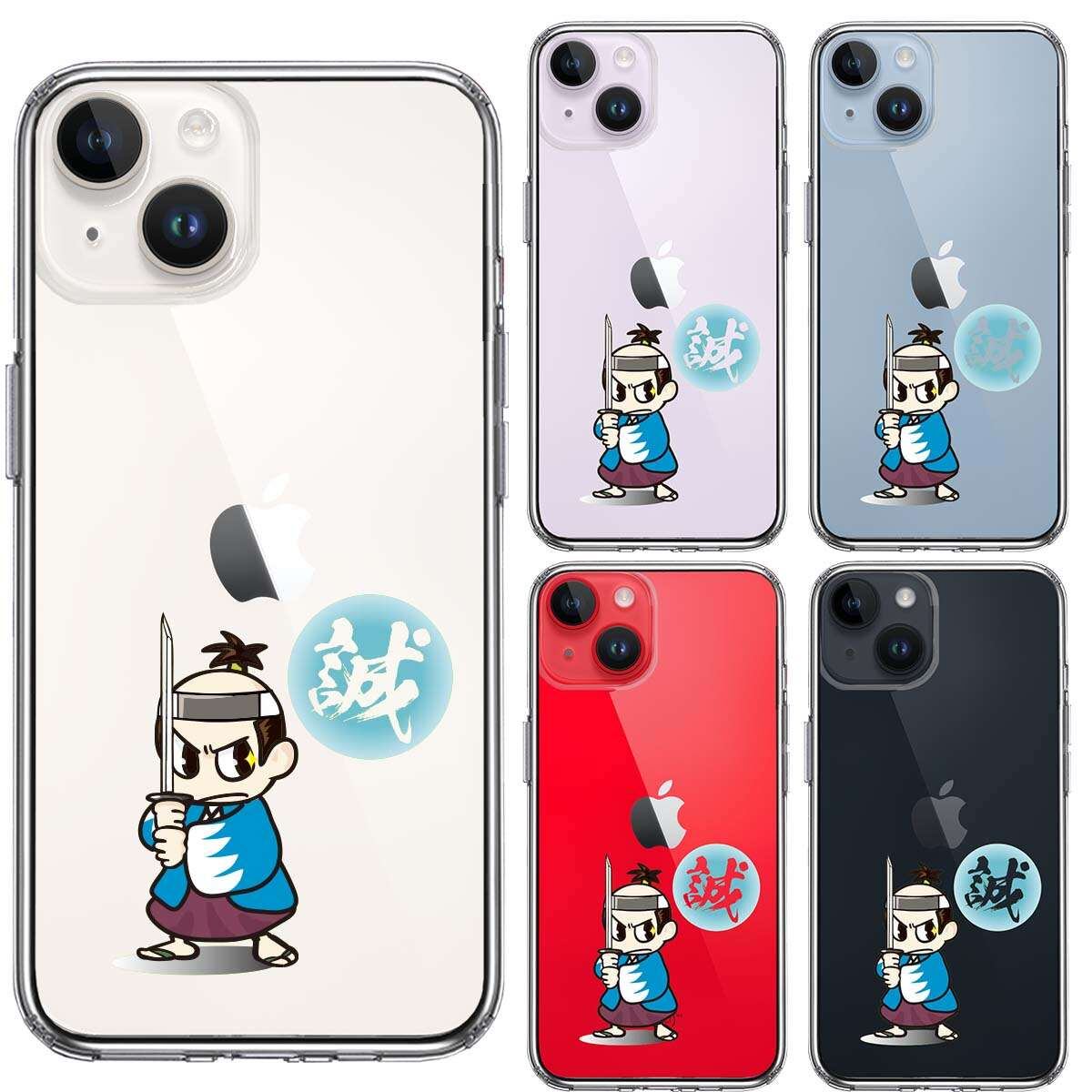 iPhone14 側面ソフト 背面ハード ハイブリッド クリア ケース 侍 新撰組 新選組 ブルー