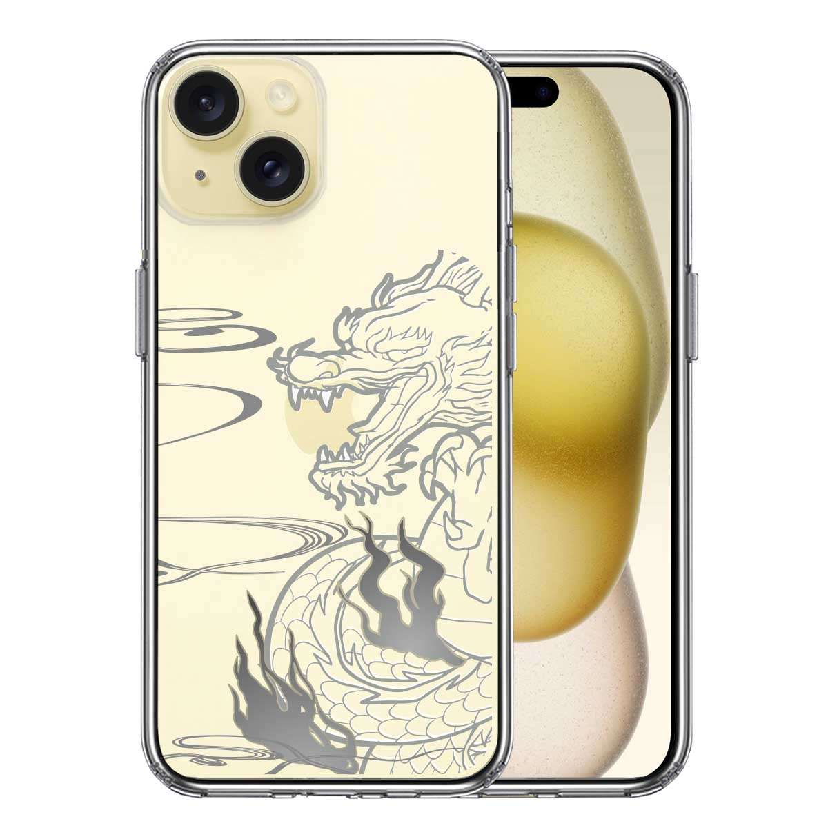 iPhone15 側面ソフト 背面ハード ハイブリッド クリア ケース 龍 1